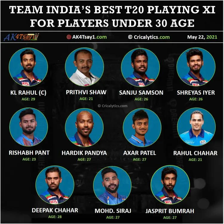 Team India best t20 playing 11 for the players under 30 age